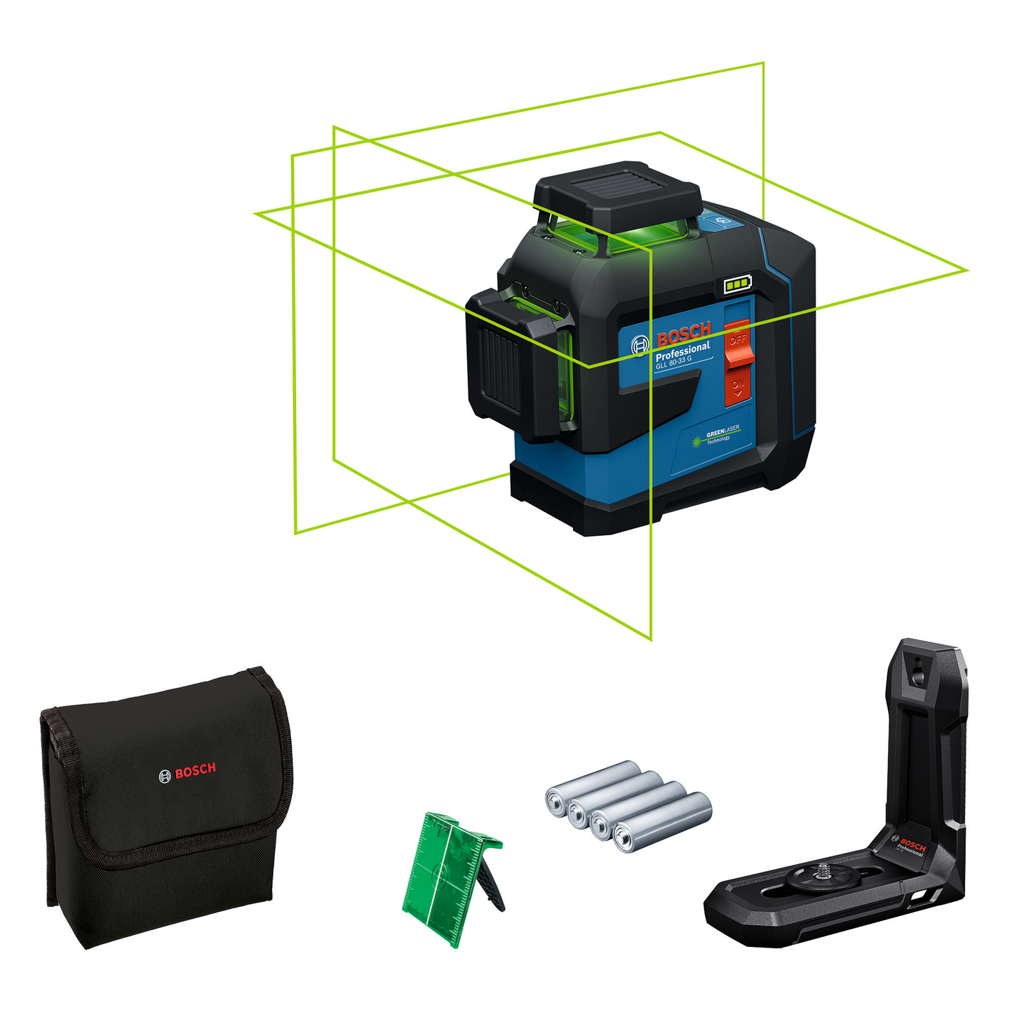 Linjalaser Bosch GLL 80-33 G 4x1,5V AA + tasku