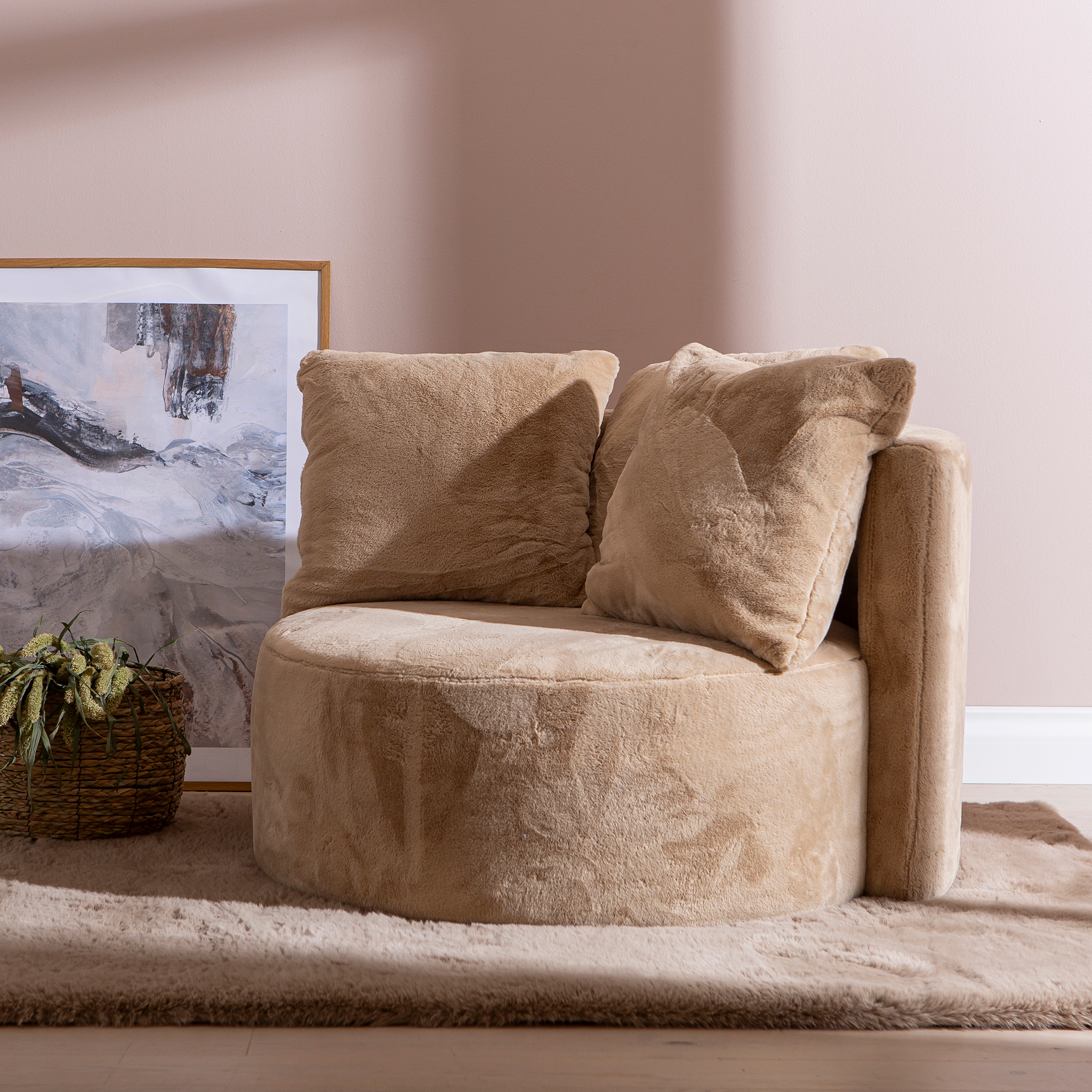 Kelzo divaani, beige karvaverhoilu